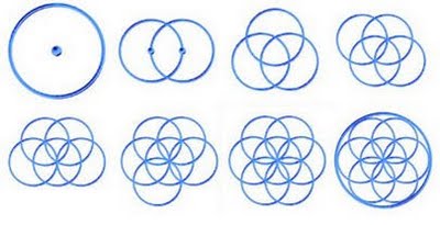 Ao olhar para a imagem da Flor da Vida pensamos que é demasiado complicada para se desenhar. Mas por agora, olhemos para esta imagem anterior acima e pensemos que ela é a base para muitas outras. O